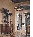 providing the backdrop for a buffet. Flanking the niche are carved-mahogany