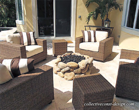 Cozy seating groups furnished with comfortable, deep-cushioned pieces encourage conversation in outdoor living spaces. Photo Courtesy of AAA Custom Pools.
