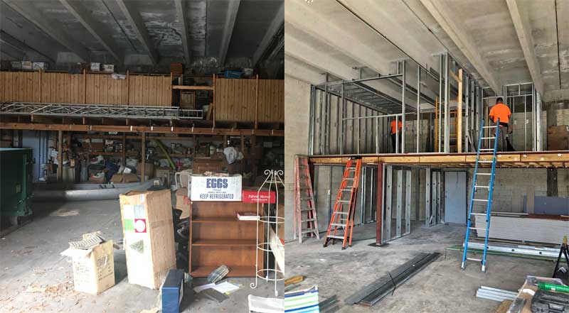 On the contracting side, Arthur Kubli and his team cut the concrete slab to install plumbing and electrical for the entire space - including footers for a newly added mezzanine. Everything in the extensive renovation needed to meet South Florida’s strict building codes designed to withstand dangerous storms, and because the vintage vehicles can put out a mist of oil, fabrics throughout had to be durable.