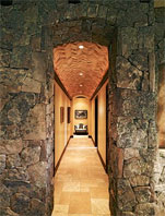 Moss rock, Chicago brick and elegant modular limestone define this corridor.