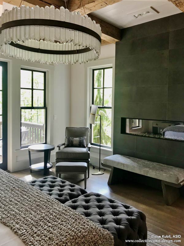 “This unique turnkey project includes interior and exterior specification of builder finishes,” says Eloise Kubli, ASID. Her role also encompasses all aspects of the custom interior design of the home, as well as sourcing and incorporating distinctive furnishings, lighting, and slabs. Read the client’s comments here.
