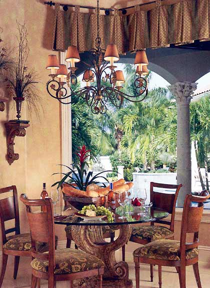 lush courtyard and pool area inspired the green and gold palette of the casual