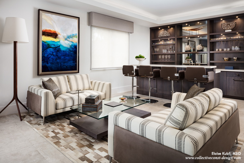 That was the case for a retired couple who commissioned interior designer Eloise Kubli, owner of Collective Construction and Design in Plantation, to decorate their newly constructed home in Fort Lauderdale. They had been living in a townhouse, but now they wanted a larger home for grandchildren to visit, as well as a décor elegant enough for frequent entertaining.
