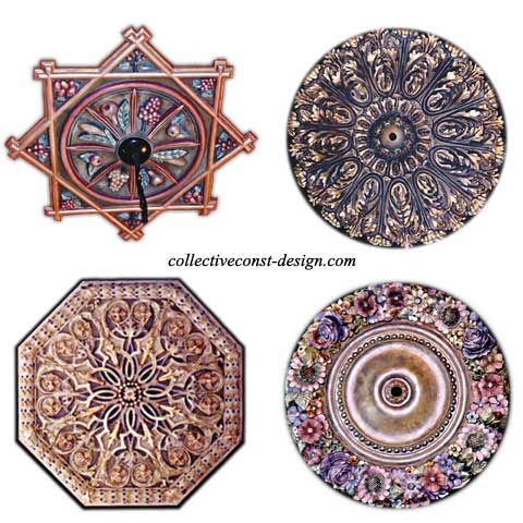 Medallions may be round, oval or octagonal, and feature flowers or other patterns that bring visual panache to a ceiling that may otherwise be flat and boring.