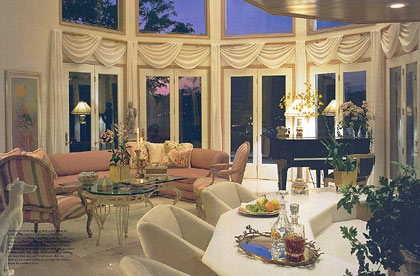 course and lake vistas. The upholstered bed and spread are made of tussah silk