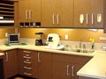 The creative and efficient use of space and natural materials extends to the exam rooms, offices and patient treatment areas. Plasma screen TVs have been installed throughout the facility, while modern, high-speed networked computers featuring state-of-the-art flat screens are available at each treatment station.