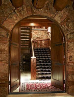 Moss rock, Chicago brick and elegant modular limestone define this corridor.