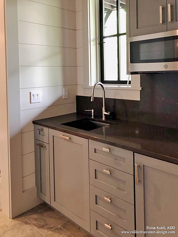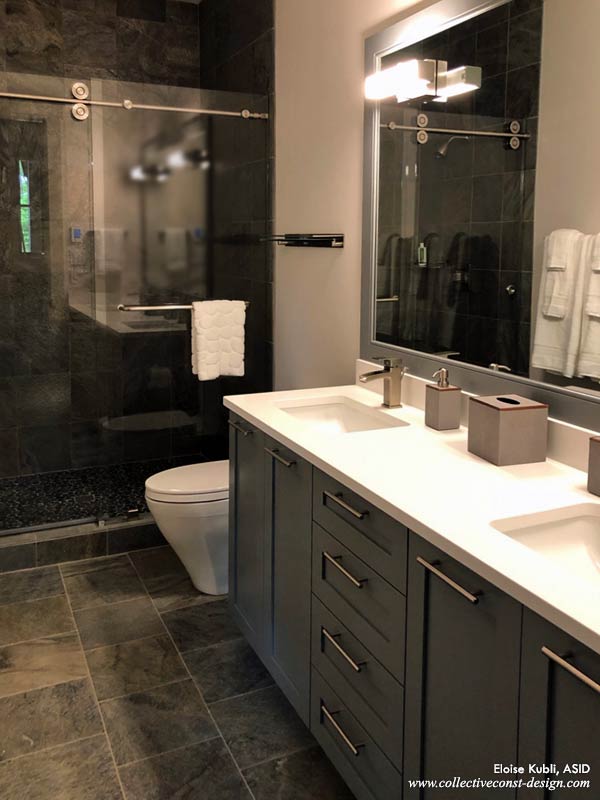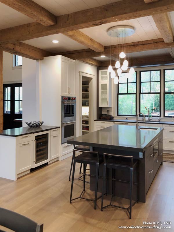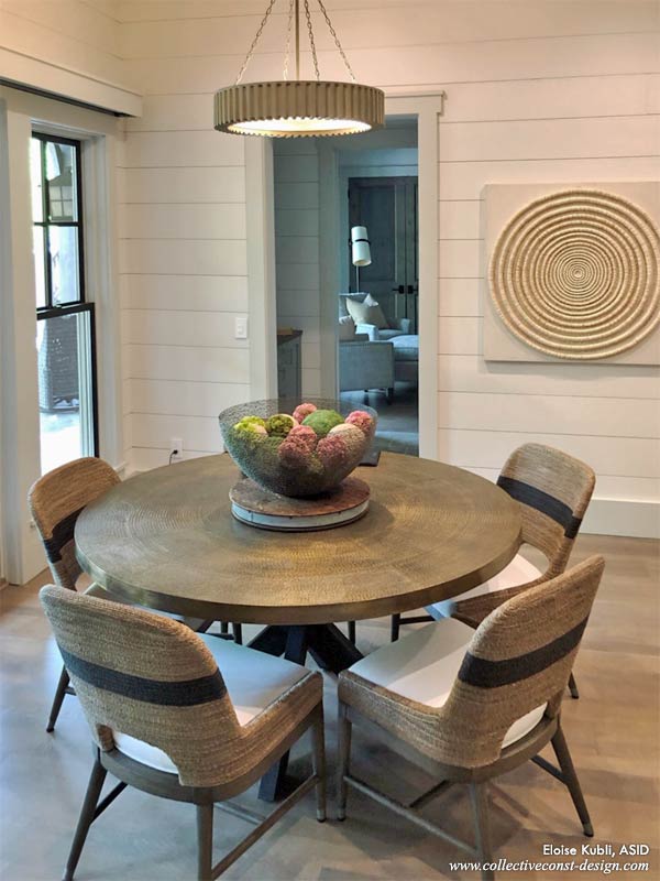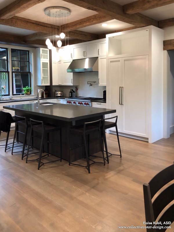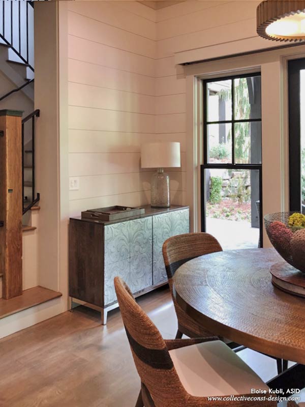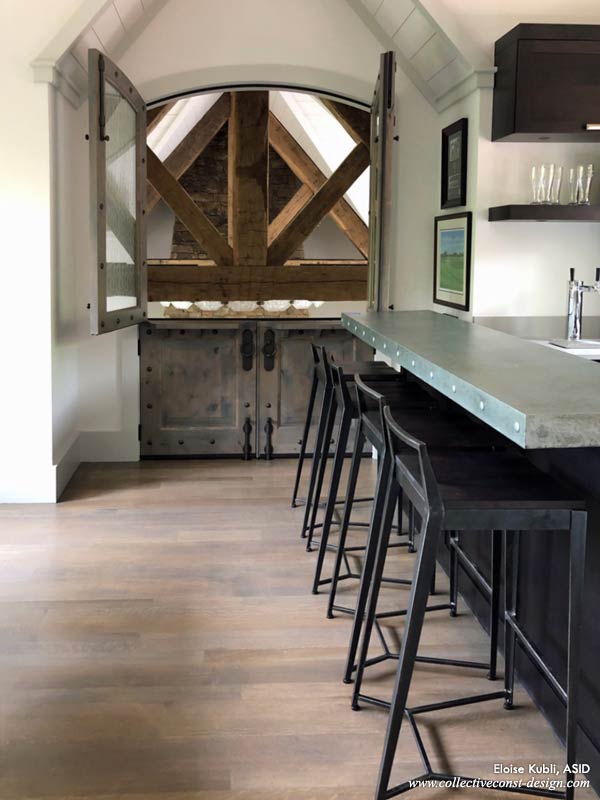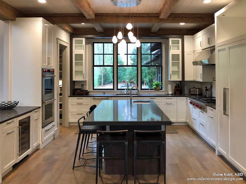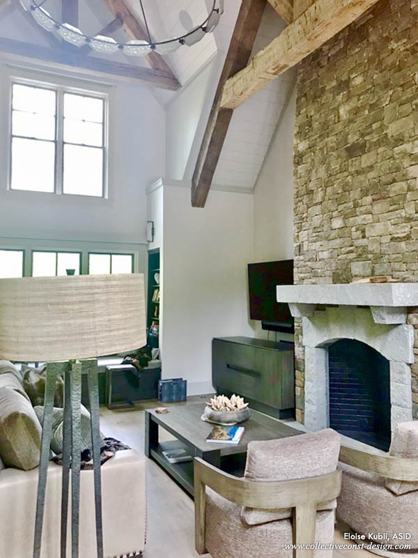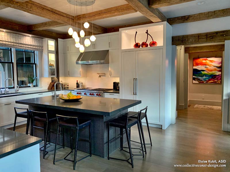 “This unique turnkey project includes interior and exterior specification of builder finishes,” says Eloise Kubli, ASID. Her role also encompasses all aspects of the custom interior design of the home, as well as sourcing and incorporating distinctive furnishings, lighting, and slabs. Read the client’s comments here.