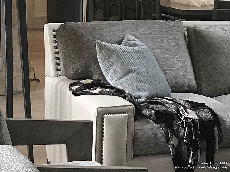 Living Room Detail - Custom sofa with leather, chenille, and nail trim.